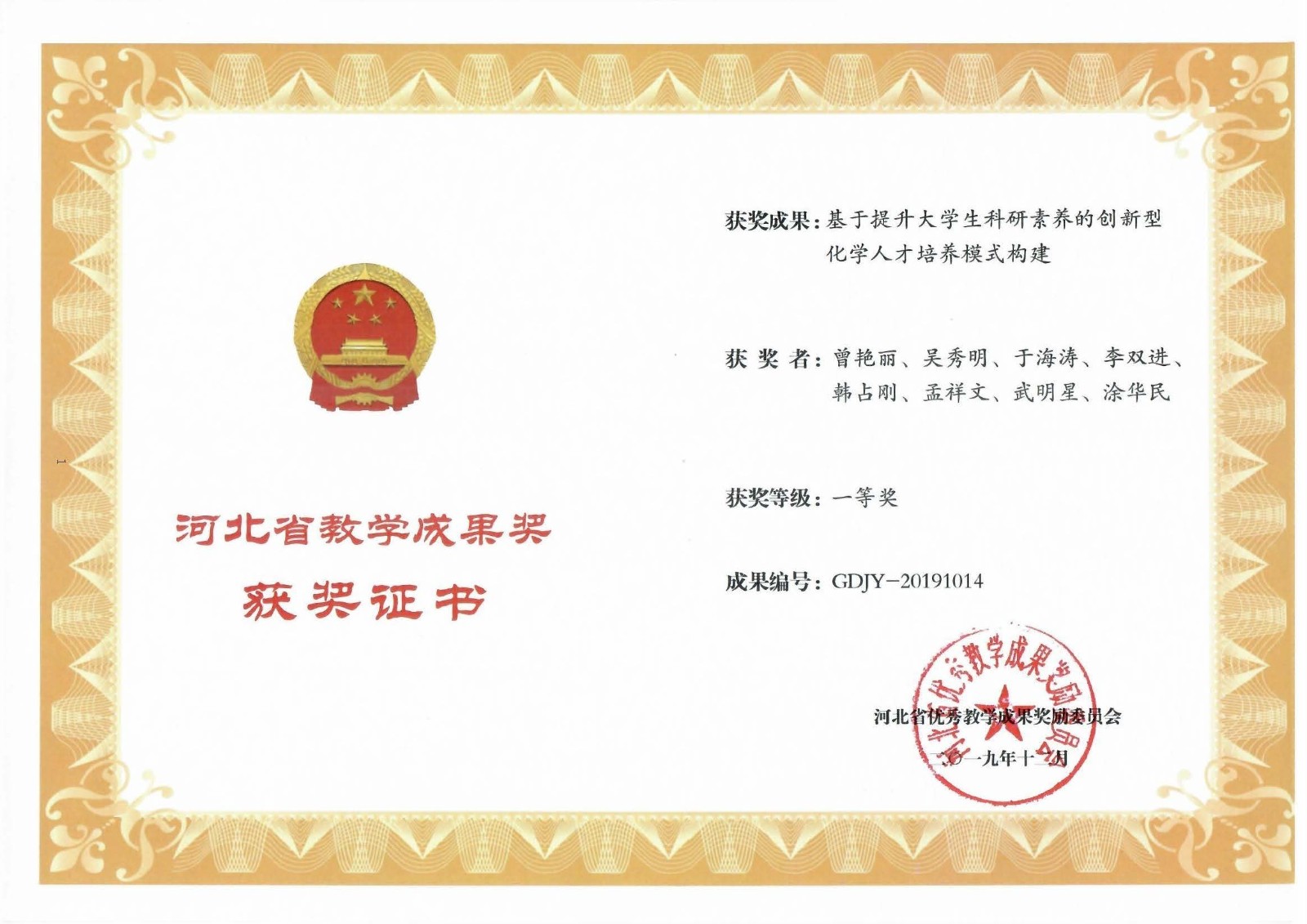 公司曾艳丽教授团队教学成果荣获河北省教学成果一等奖