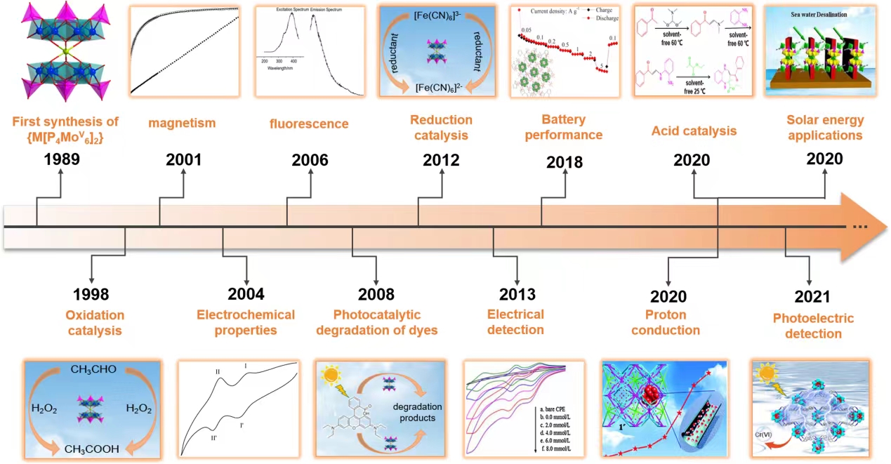 {M[P4Mo6]2}簇基化合物应用发展时间轴