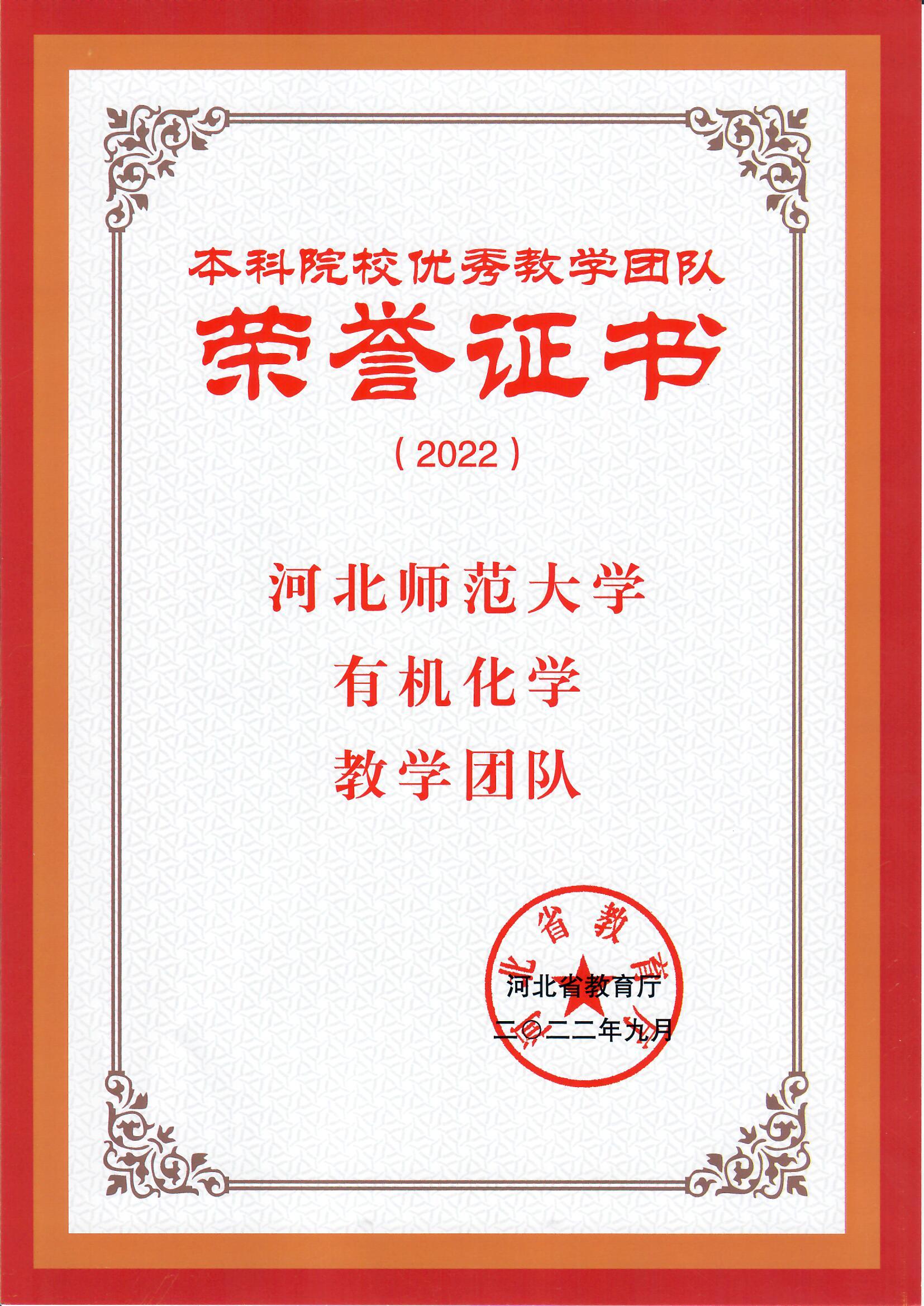 公司有机化学教学团队获评本科院校优秀教学团队